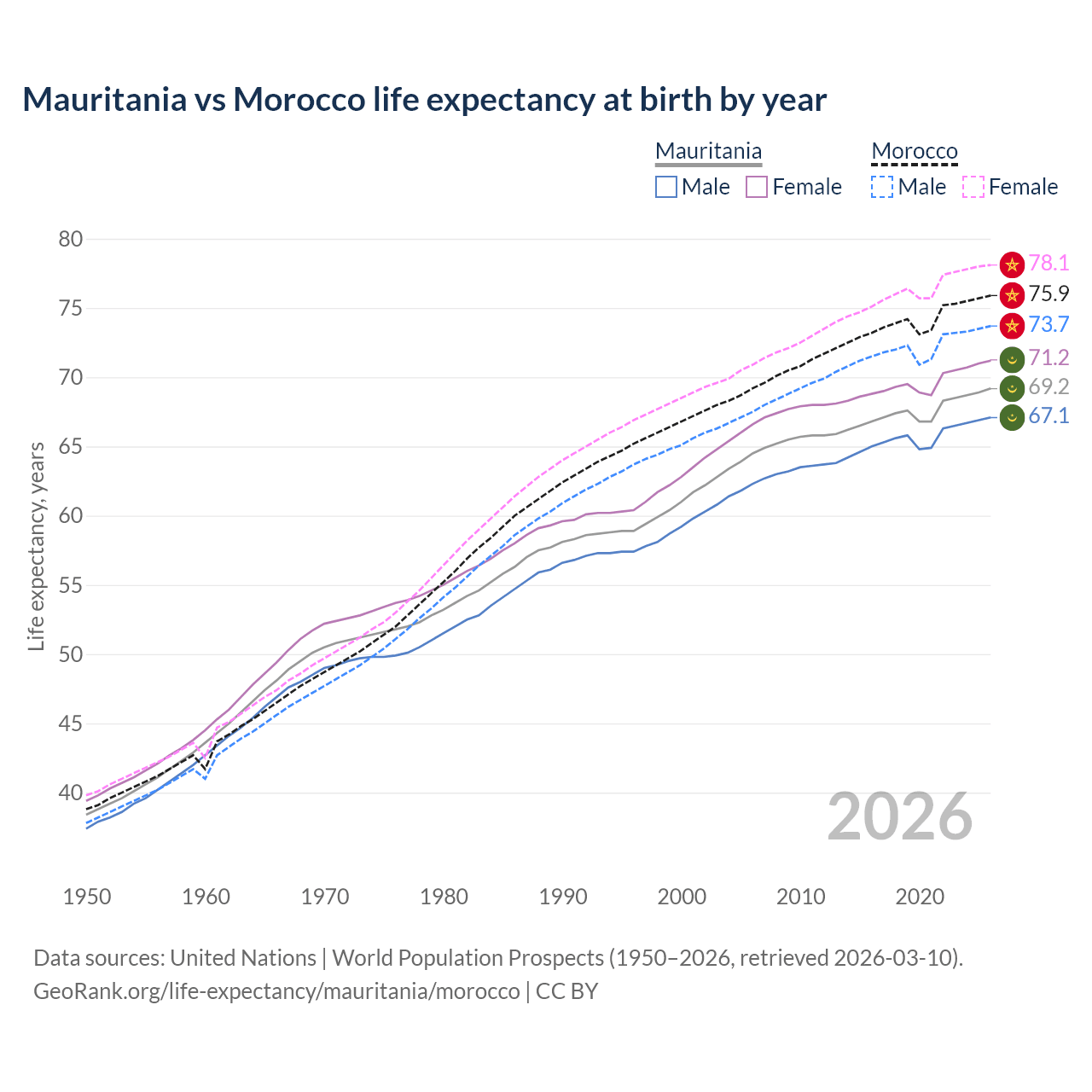 GeoRank.org/life-expectancy/mauritania/morocco | CC BY
