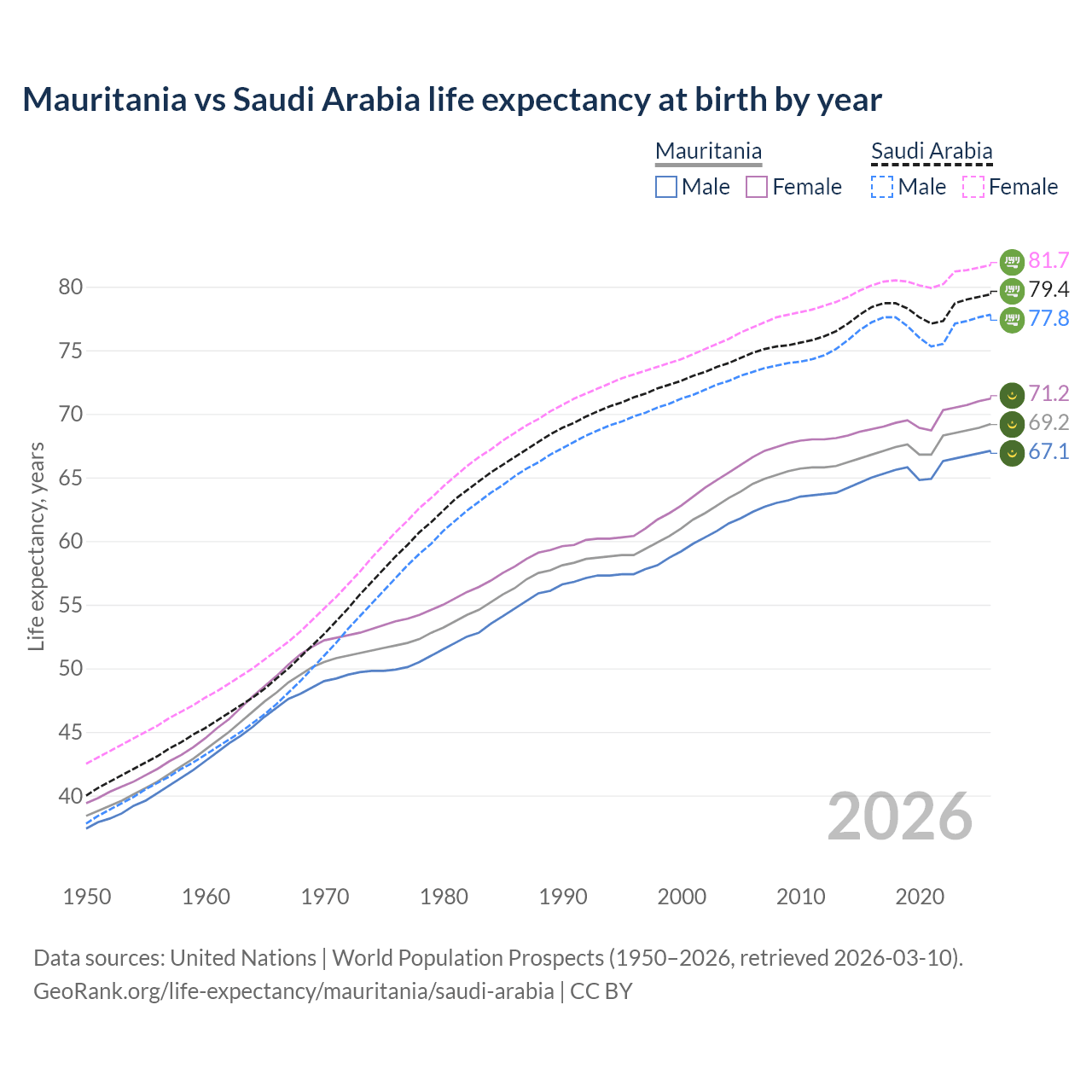 GeoRank.org/life-expectancy/mauritania/saudi-arabia | CC BY