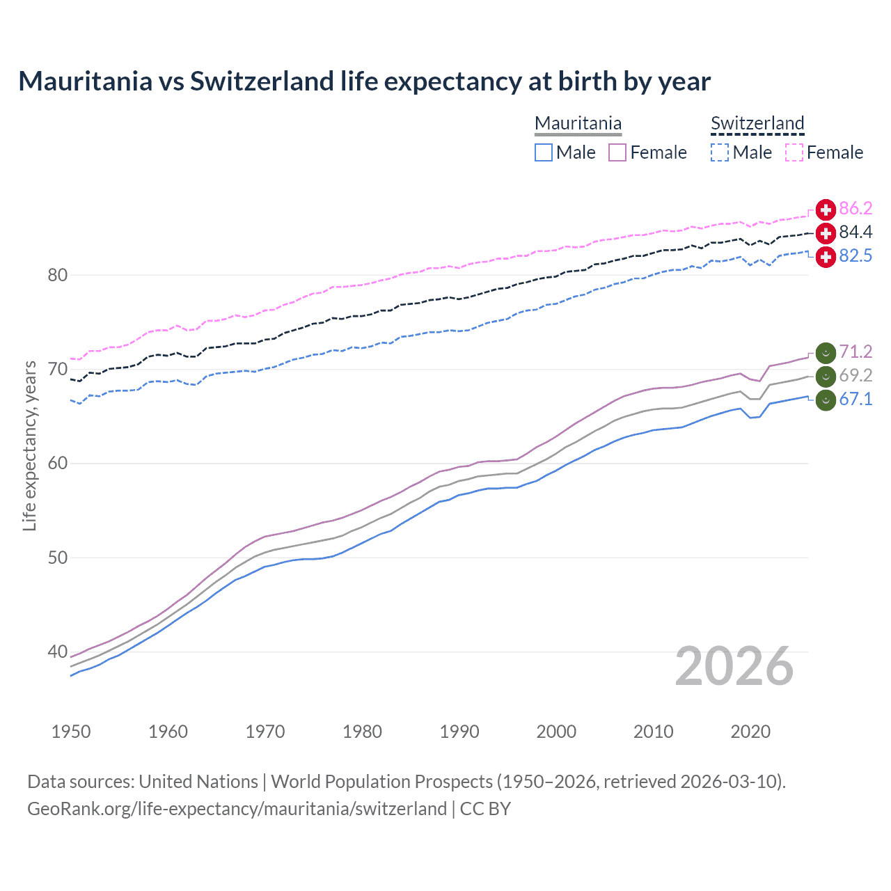 GeoRank.org/life-expectancy/mauritania/switzerland | CC BY