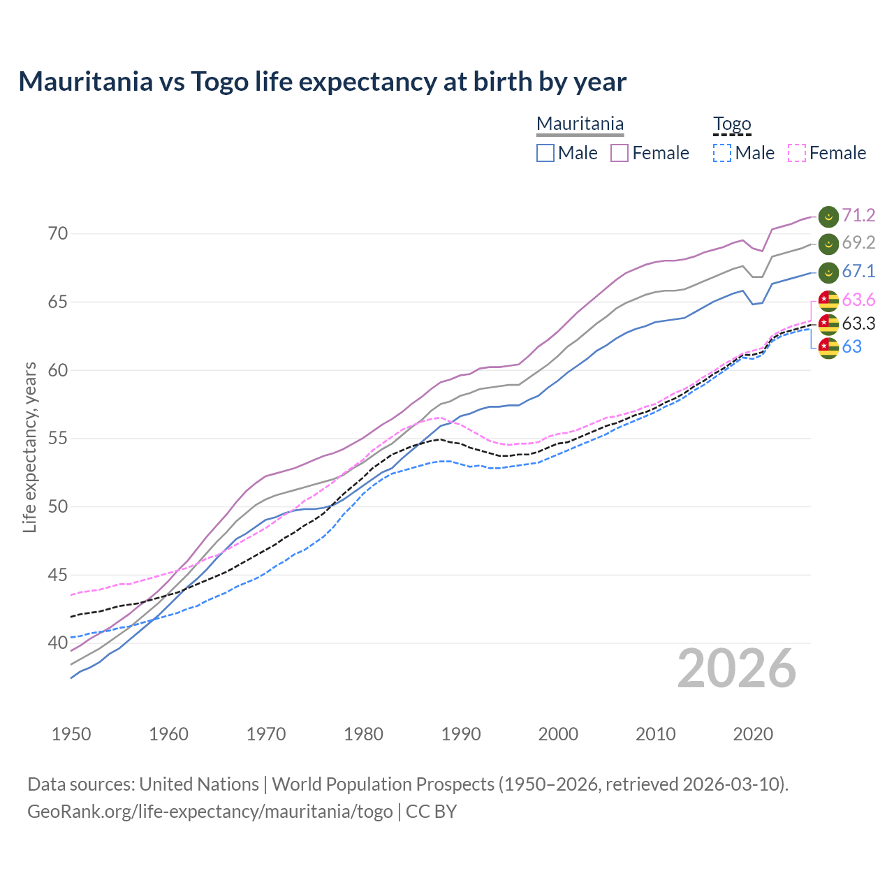 GeoRank.org/life-expectancy/mauritania/togo | CC BY