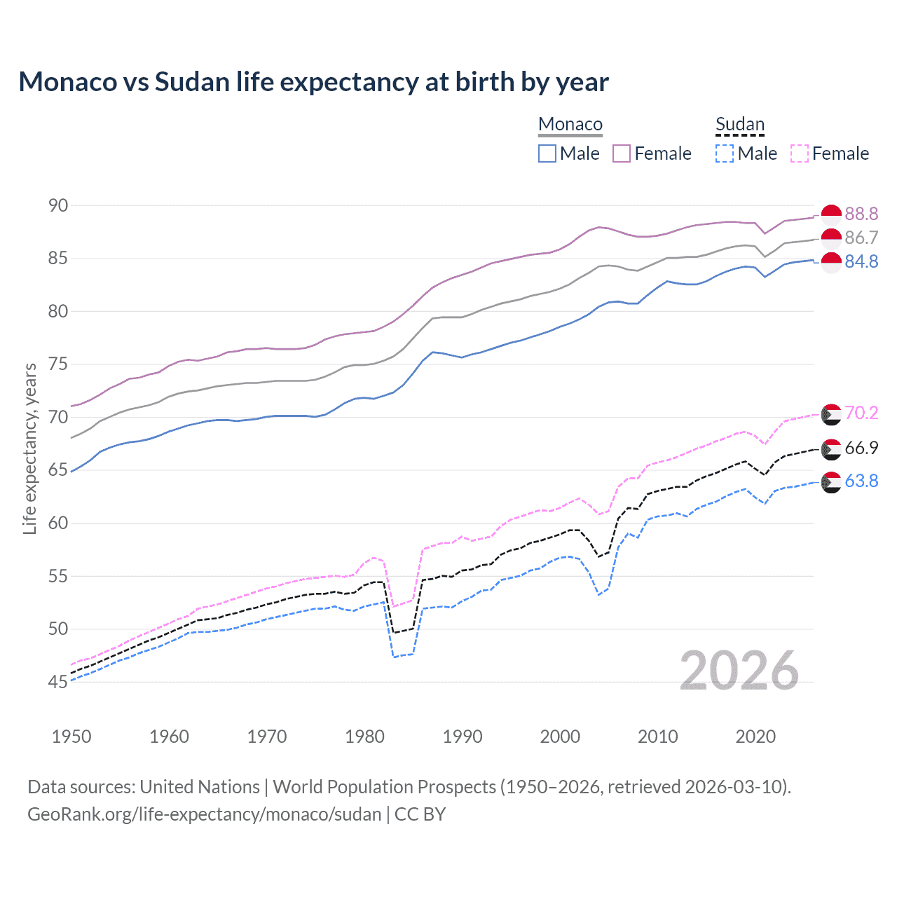 GeoRank.org/life-expectancy/monaco/sudan | CC BY