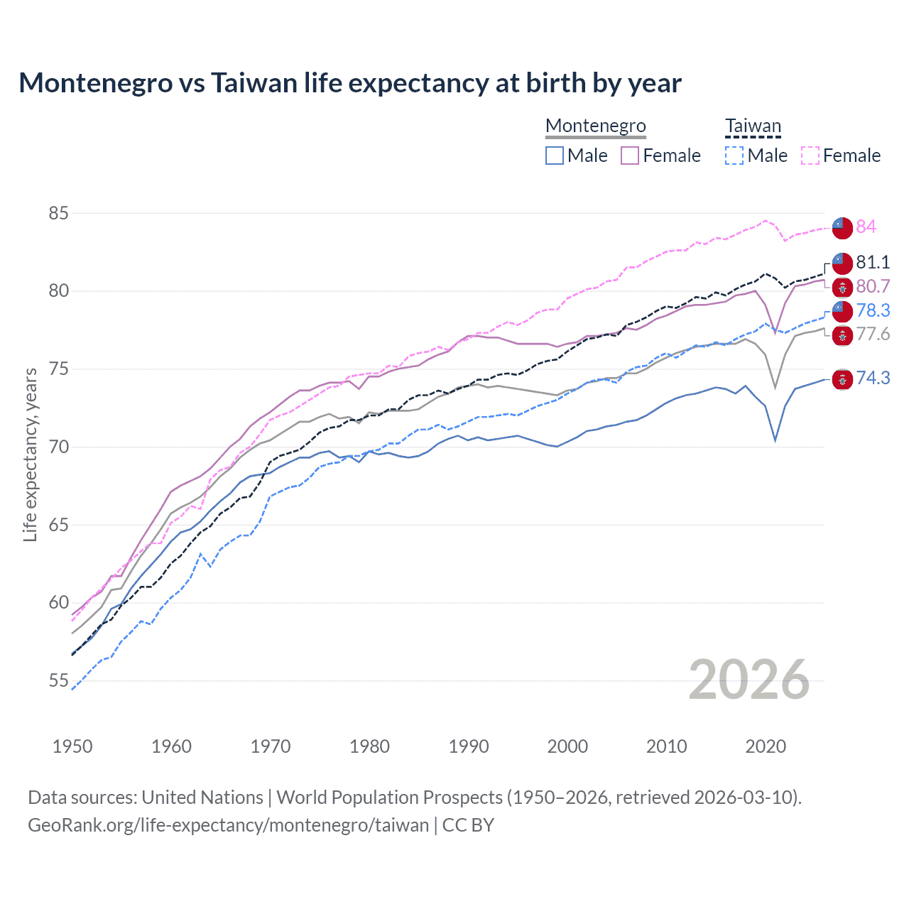 GeoRank.org/life-expectancy/montenegro/taiwan | CC BY