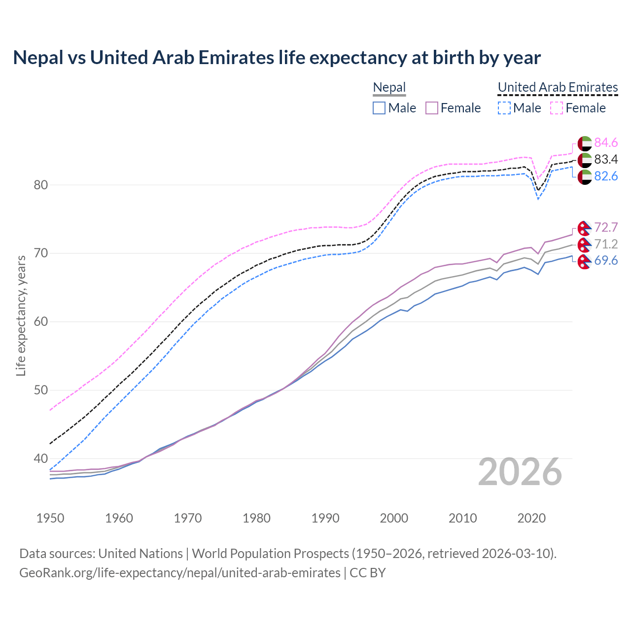 GeoRank.org/life-expectancy/nepal/united-arab-emirates | CC BY