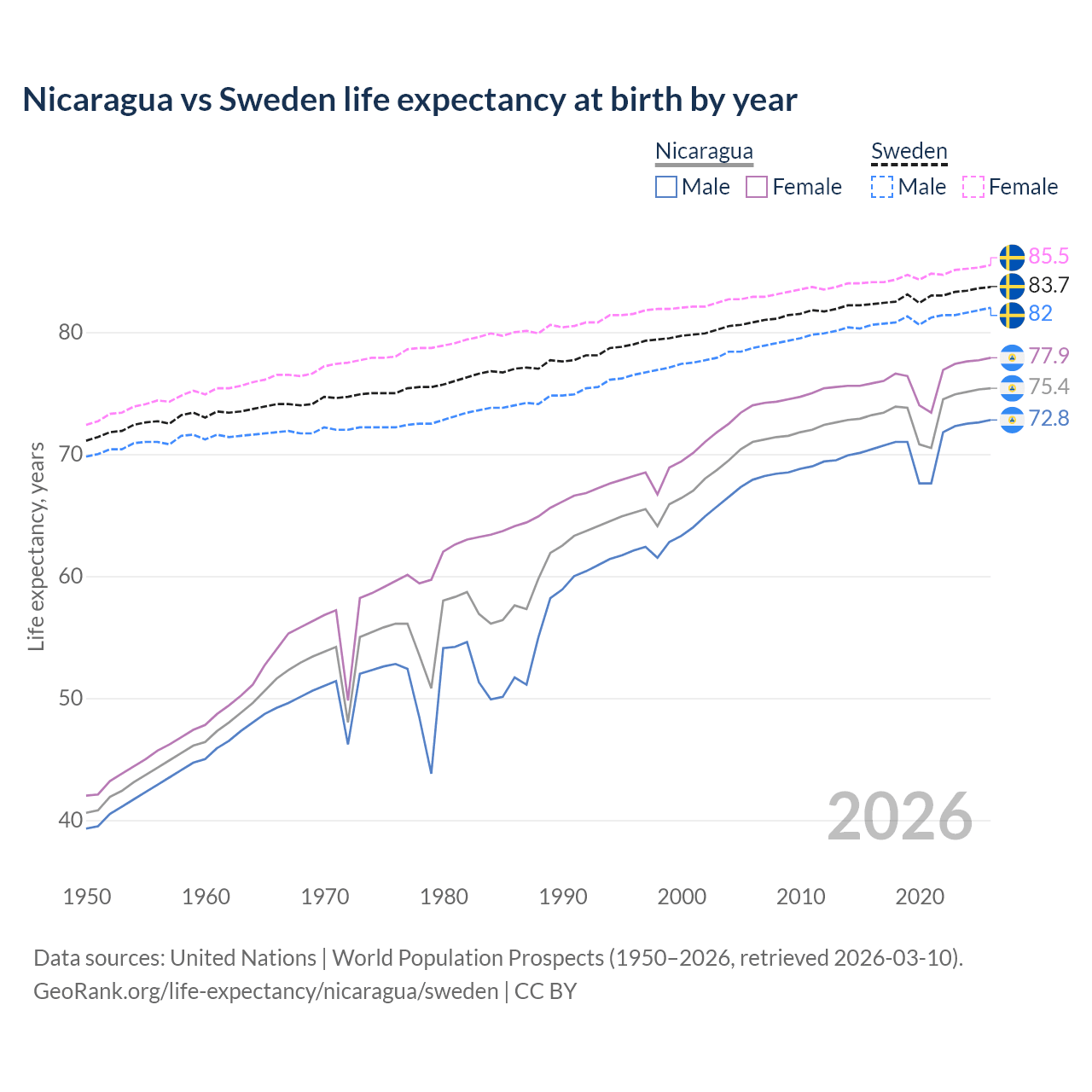 GeoRank.org/life-expectancy/nicaragua/sweden | CC BY