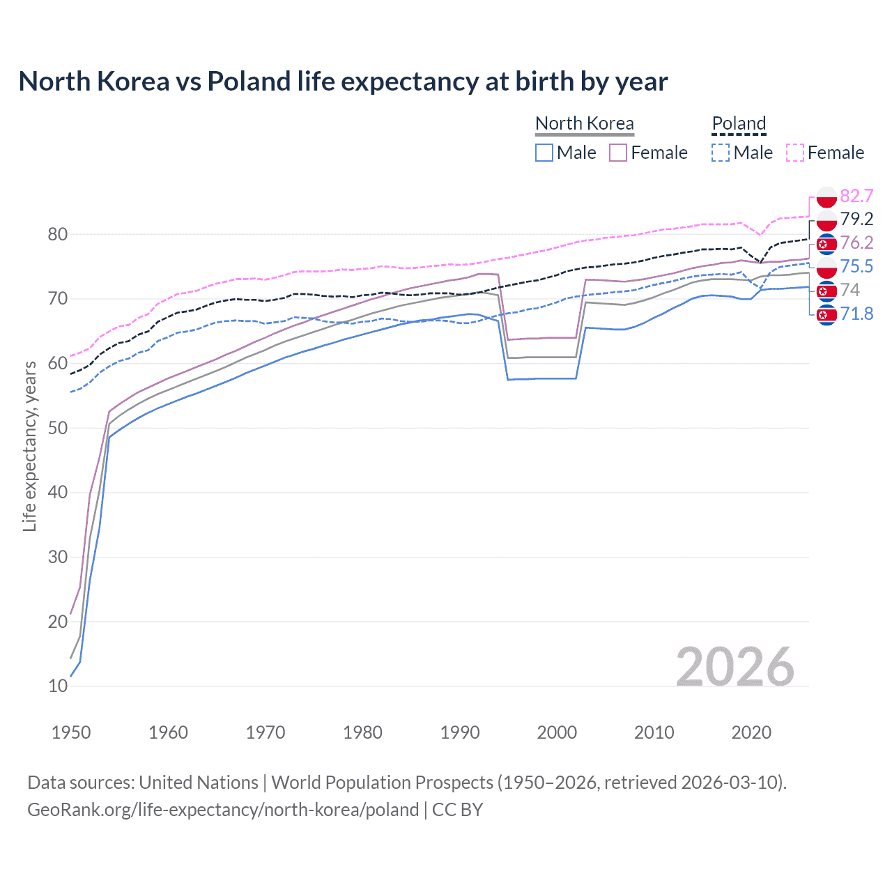 GeoRank.org/life-expectancy/north-korea/poland | CC BY