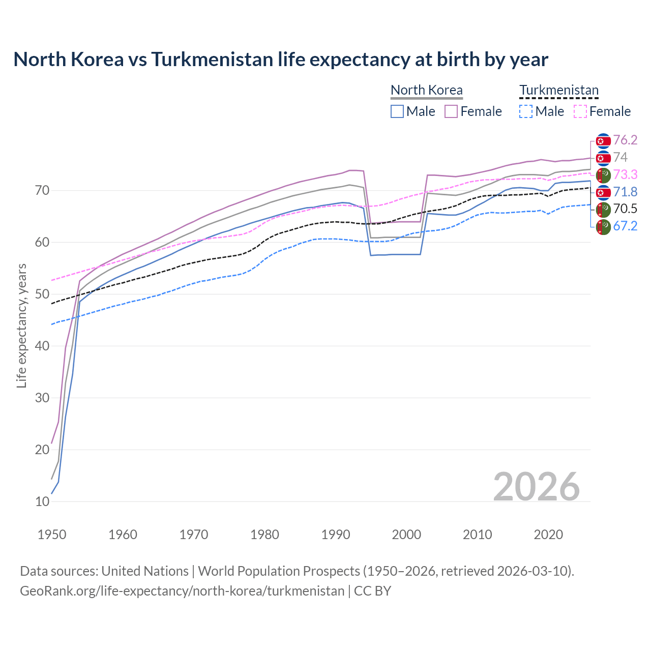GeoRank.org/life-expectancy/north-korea/turkmenistan | CC BY