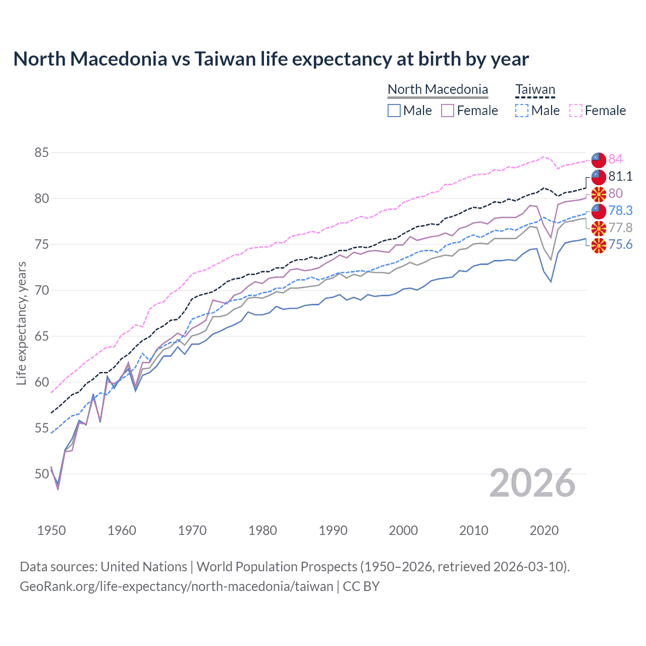 GeoRank.org/life-expectancy/north-macedonia/taiwan | CC BY