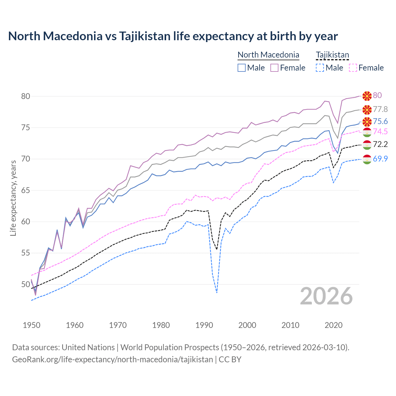 GeoRank.org/life-expectancy/north-macedonia/tajikistan | CC BY
