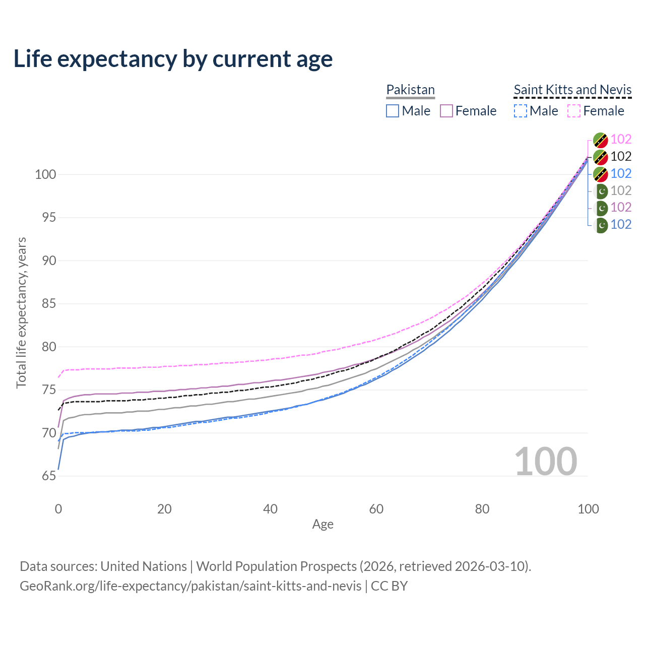 Pakistan vs Saint Kitts and Nevis life expectancy calculator