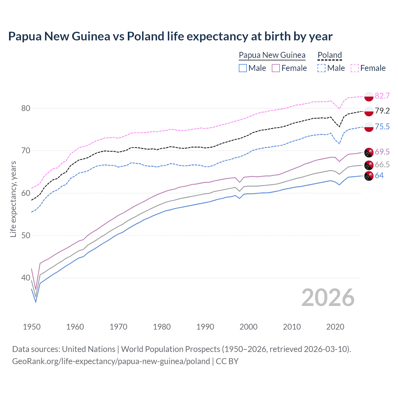GeoRank.org/life-expectancy/papua-new-guinea/poland | CC BY