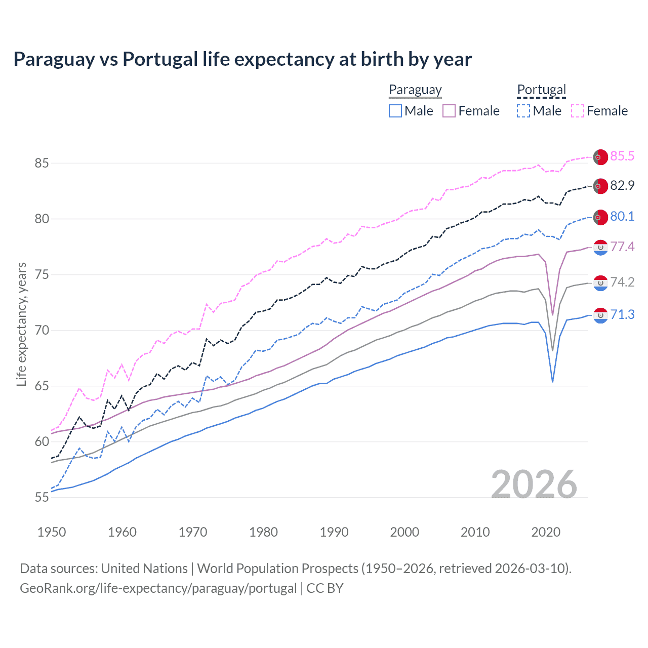 GeoRank.org/life-expectancy/paraguay/portugal | CC BY