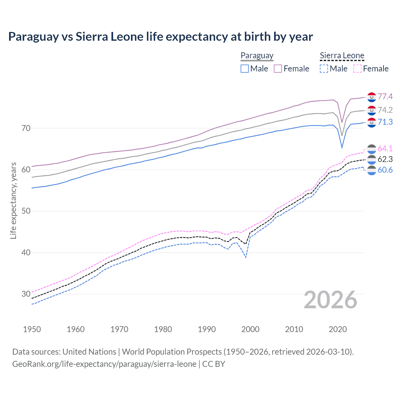 GeoRank.org/life-expectancy/paraguay/sierra-leone | CC BY