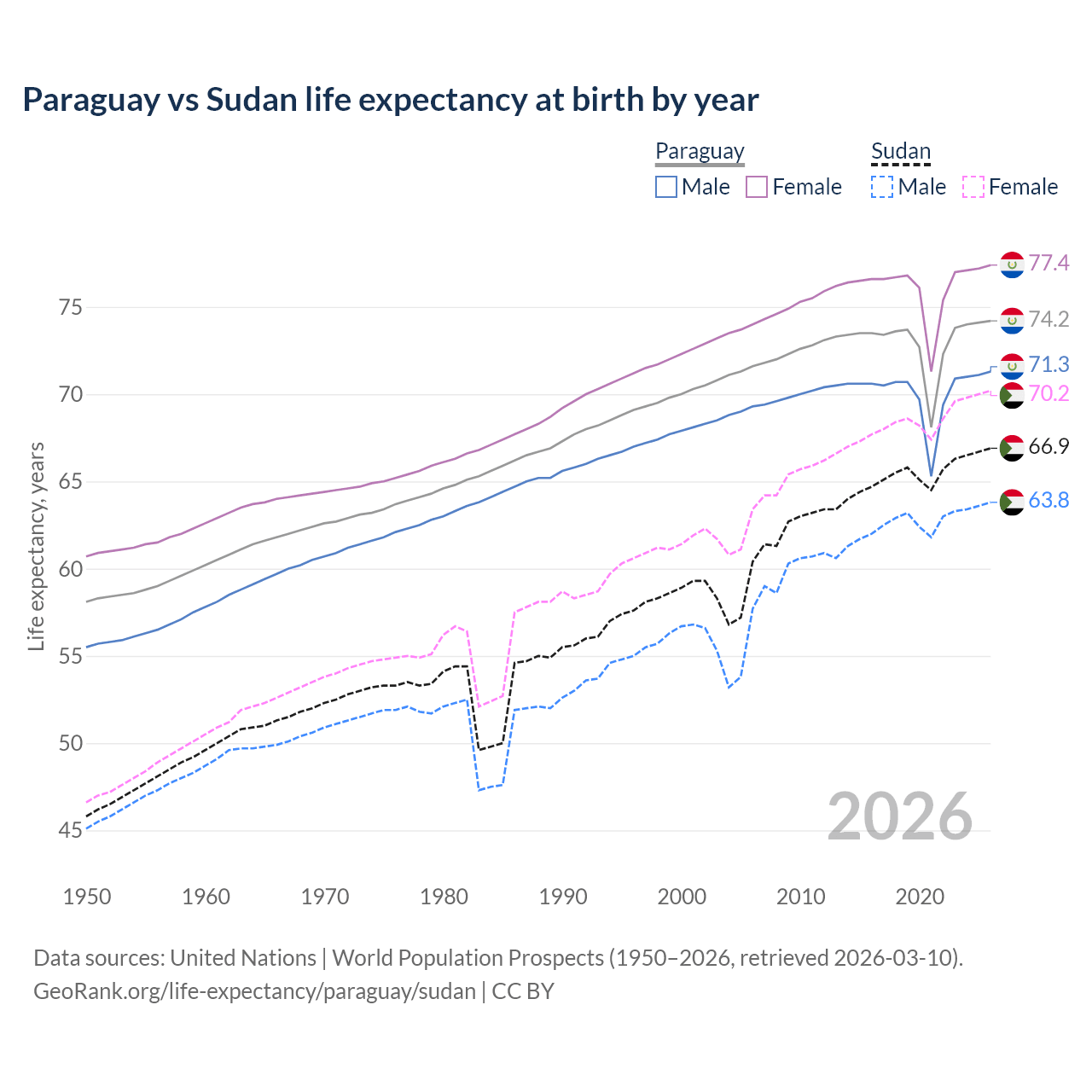 GeoRank.org/life-expectancy/paraguay/sudan | CC BY