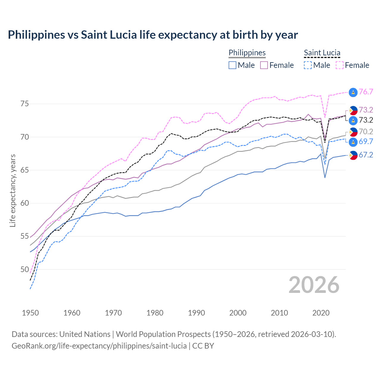 GeoRank.org/life-expectancy/philippines/saint-lucia | CC BY