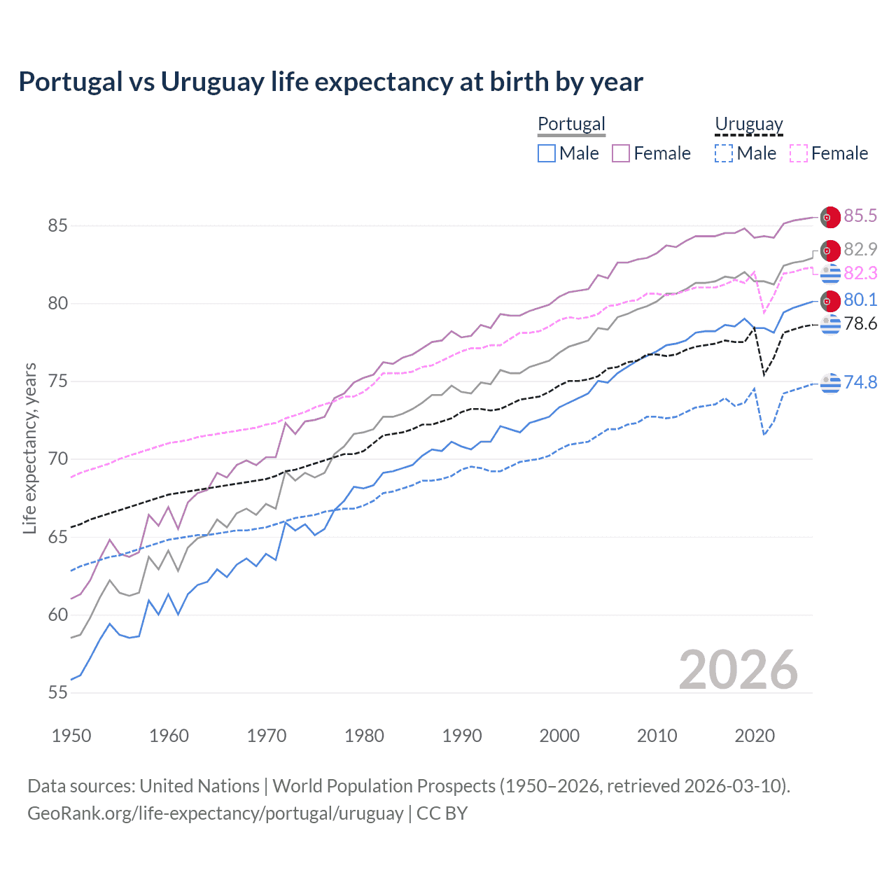 GeoRank.org/life-expectancy/portugal/uruguay | CC BY