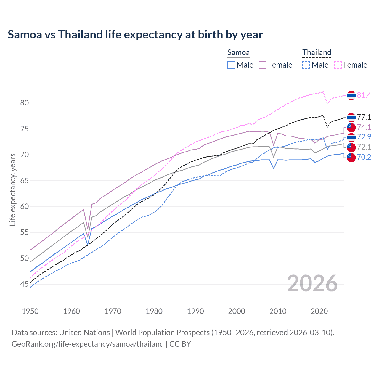 GeoRank.org/life-expectancy/samoa/thailand | CC BY