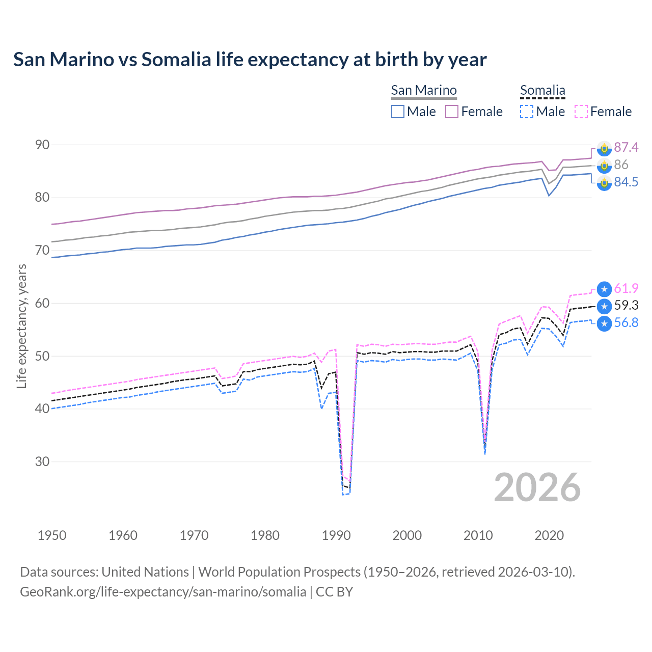 GeoRank.org/life-expectancy/san-marino/somalia | CC BY