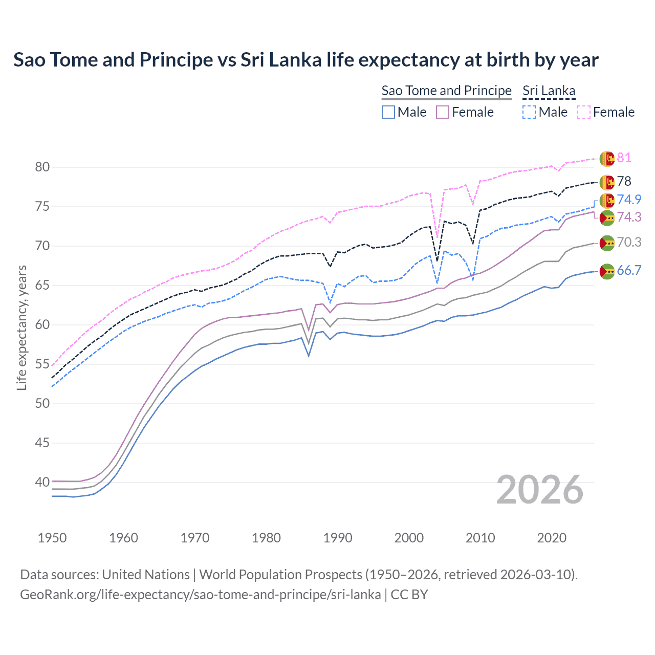 GeoRank.org/life-expectancy/sao-tome-and-principe/sri-lanka | CC BY