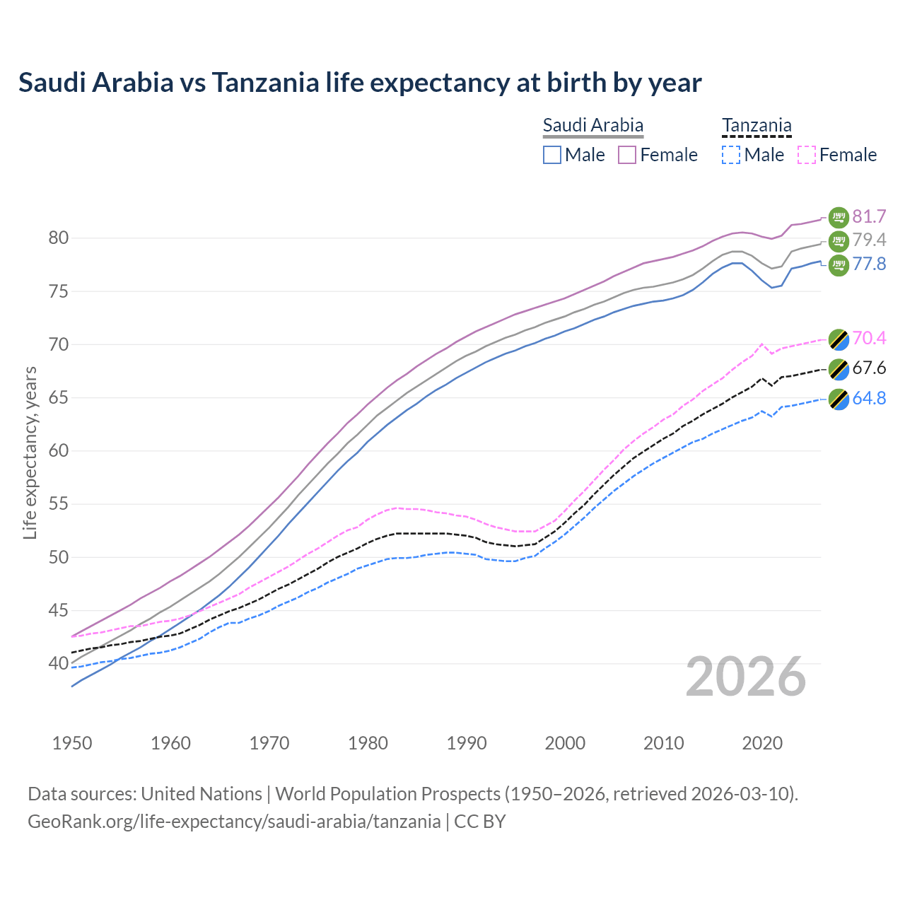GeoRank.org/life-expectancy/saudi-arabia/tanzania | CC BY