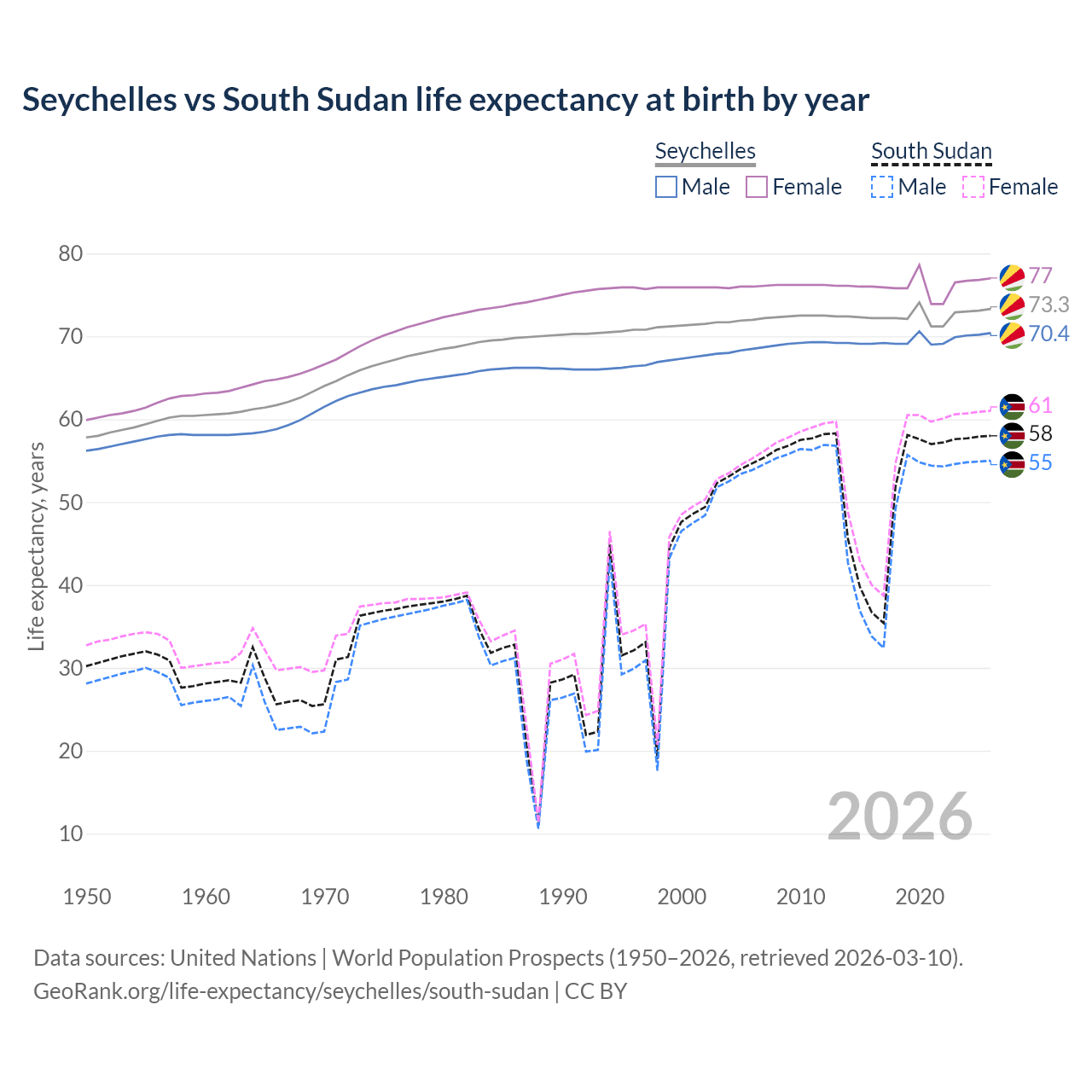 GeoRank.org/life-expectancy/seychelles/south-sudan | CC BY