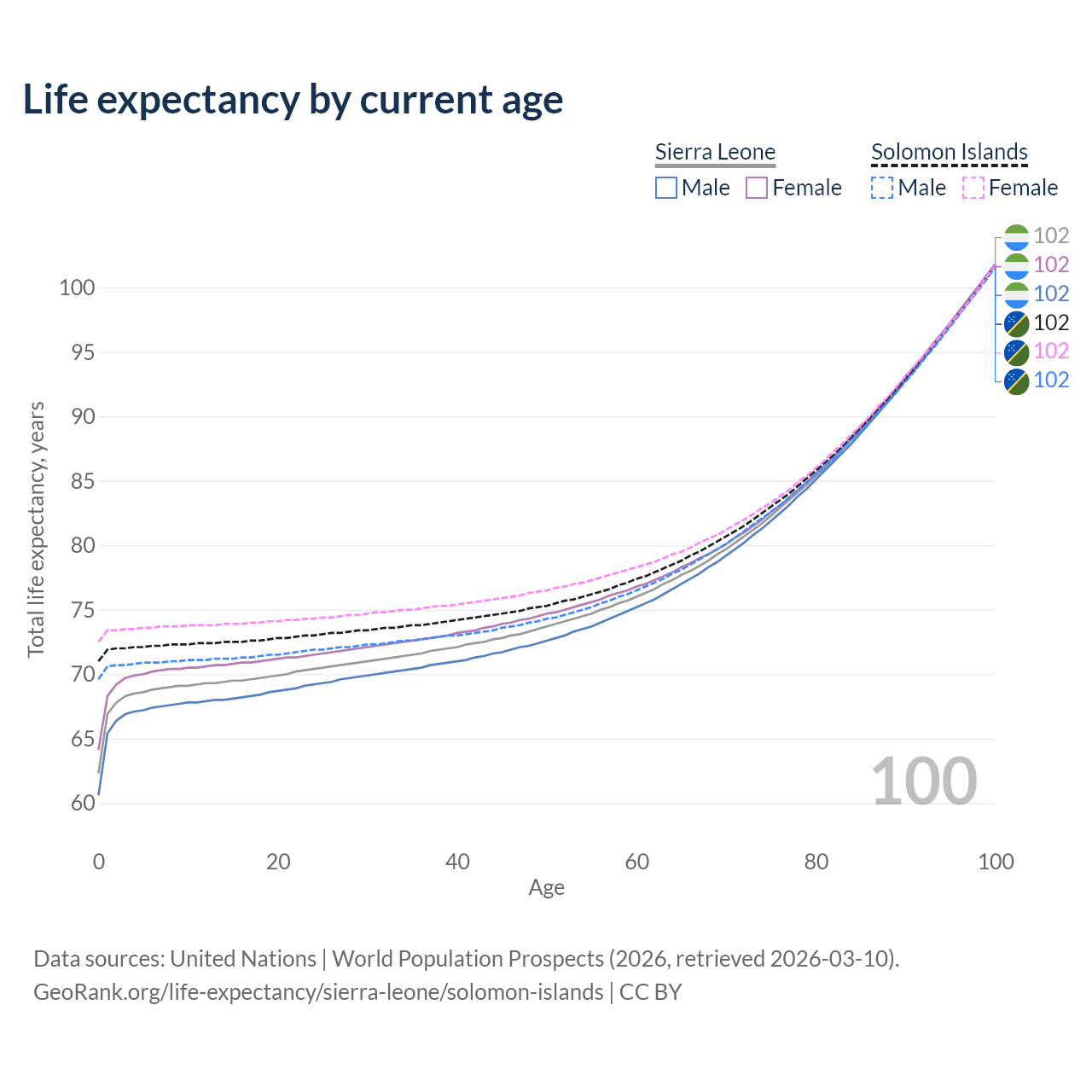 Sierra Leone vs Solomon Islands life expectancy calculator