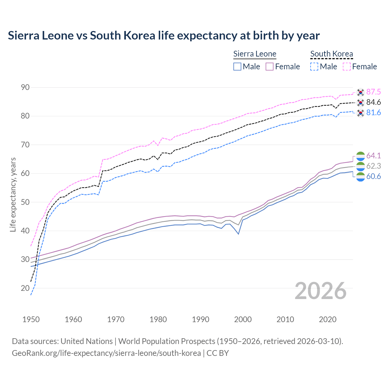 GeoRank.org/life-expectancy/sierra-leone/south-korea | CC BY