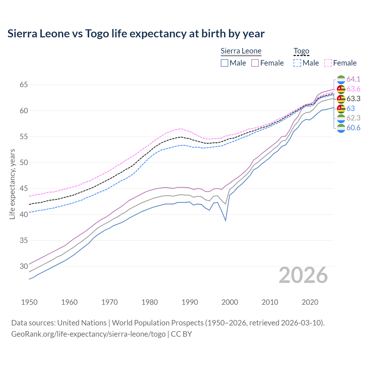 GeoRank.org/life-expectancy/sierra-leone/togo | CC BY