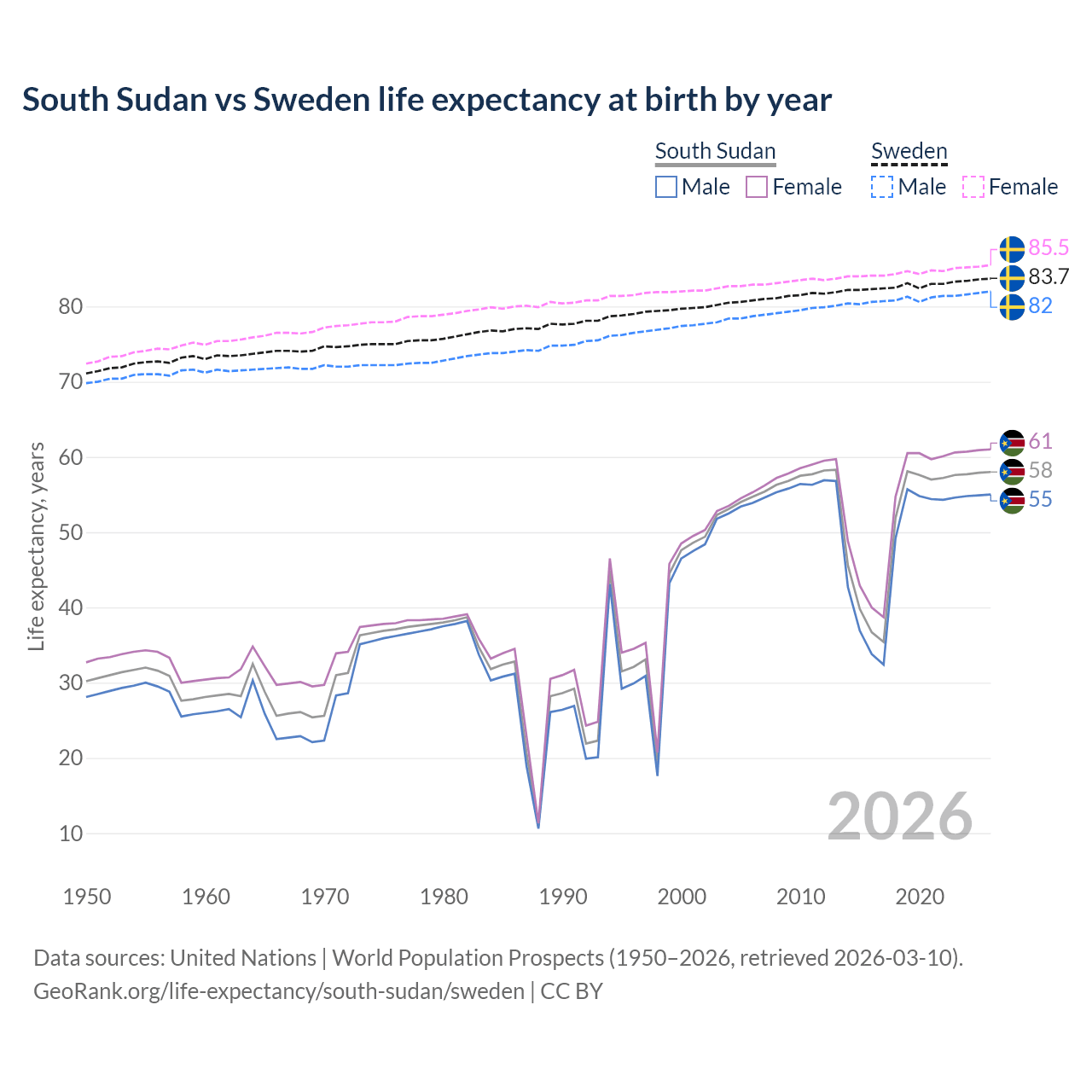 GeoRank.org/life-expectancy/south-sudan/sweden | CC BY