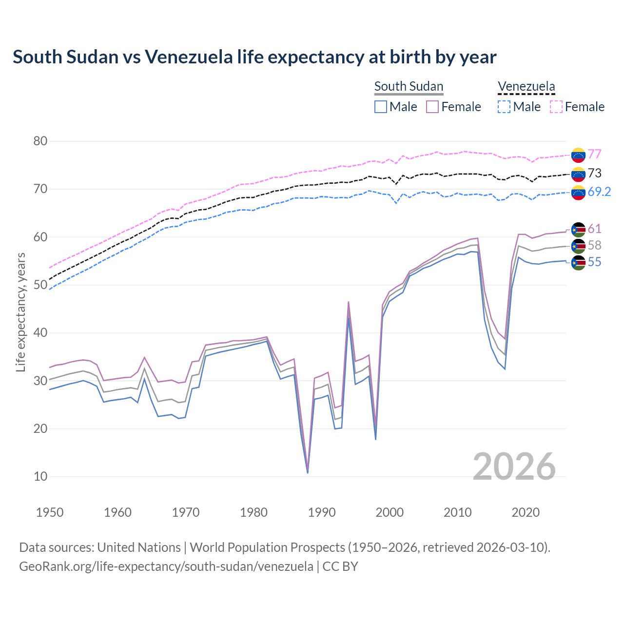 GeoRank.org/life-expectancy/south-sudan/venezuela | CC BY