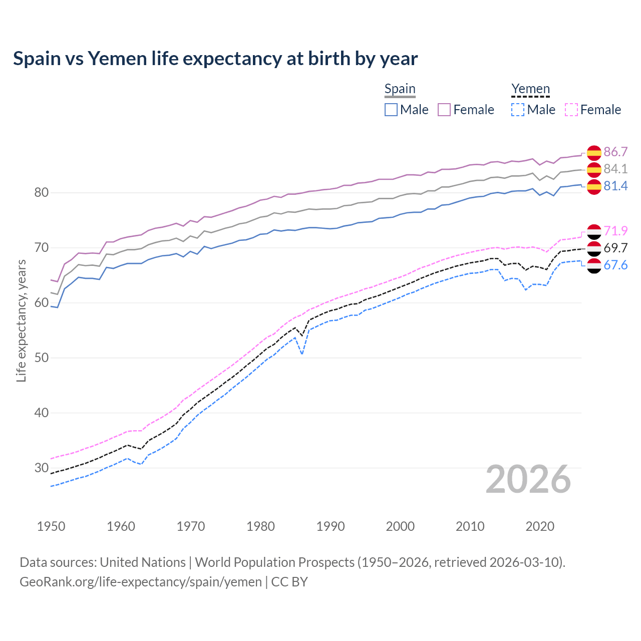 GeoRank.org/life-expectancy/spain/yemen | CC BY
