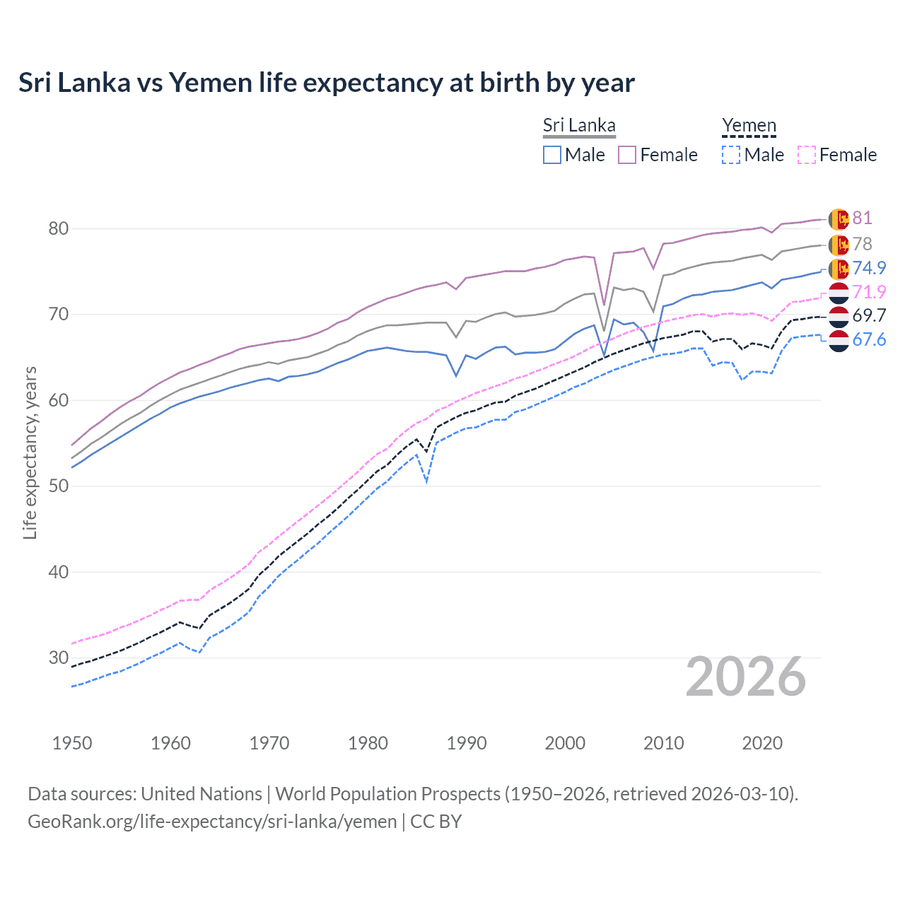 GeoRank.org/life-expectancy/sri-lanka/yemen | CC BY