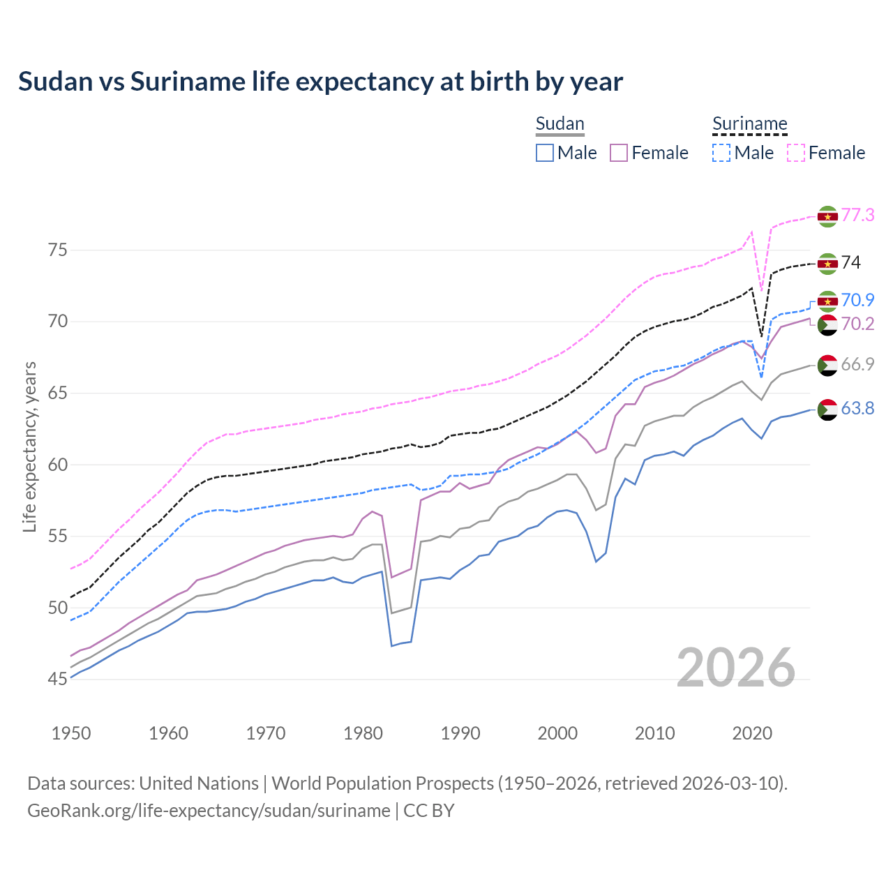 GeoRank.org/life-expectancy/sudan/suriname | CC BY