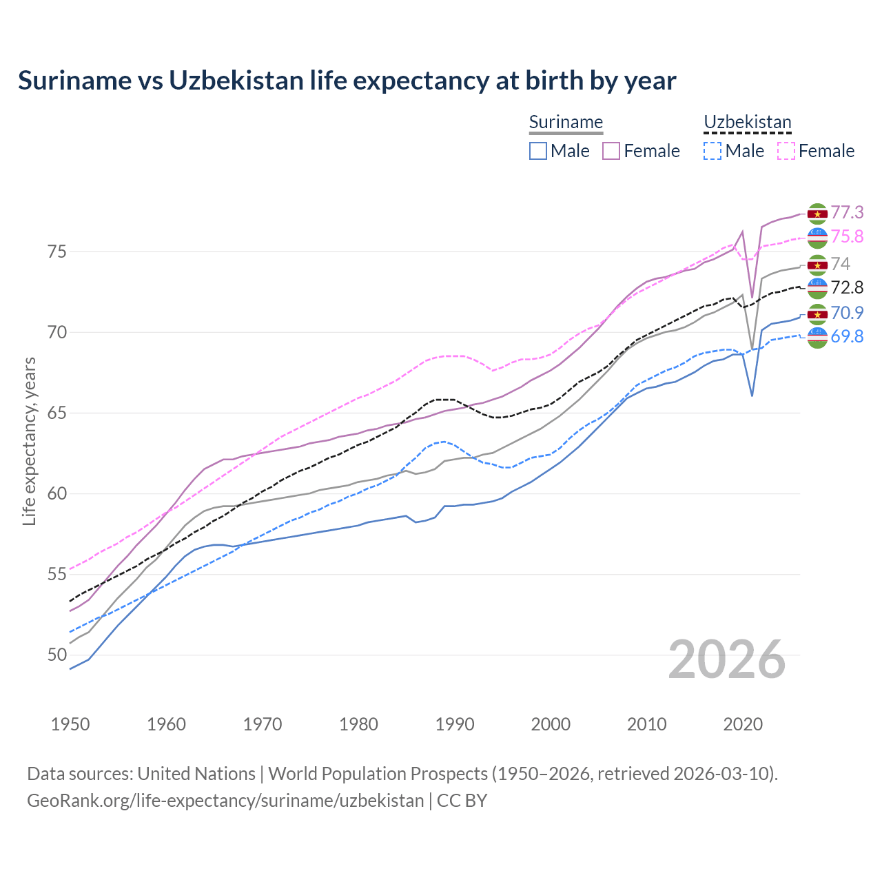 GeoRank.org/life-expectancy/suriname/uzbekistan | CC BY