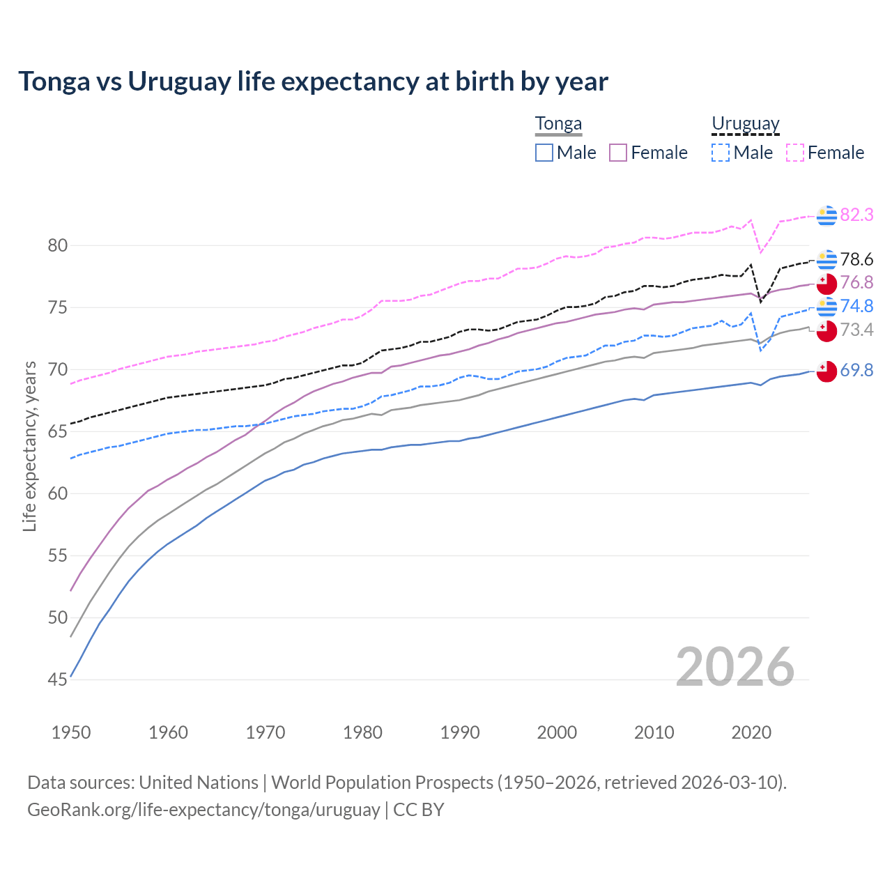 GeoRank.org/life-expectancy/tonga/uruguay | CC BY