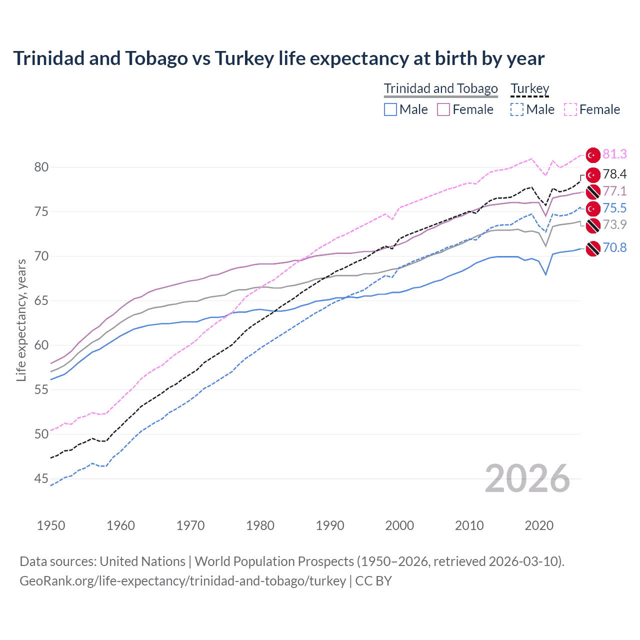 GeoRank.org/life-expectancy/trinidad-and-tobago/turkey | CC BY
