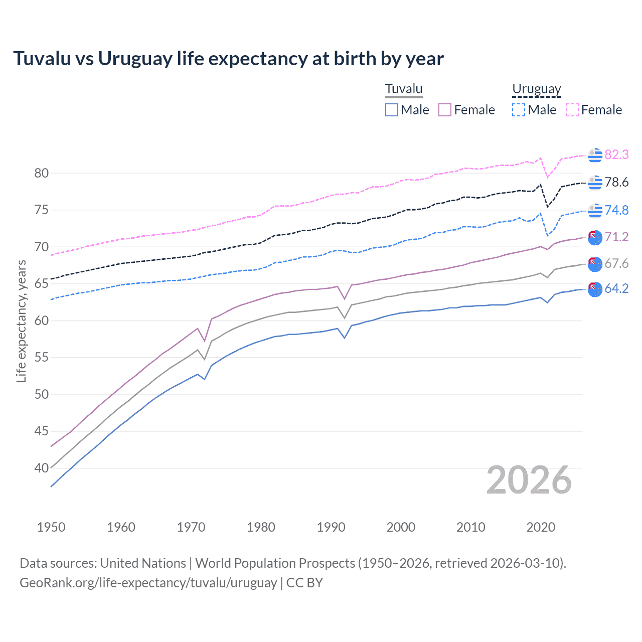 GeoRank.org/life-expectancy/tuvalu/uruguay | CC BY