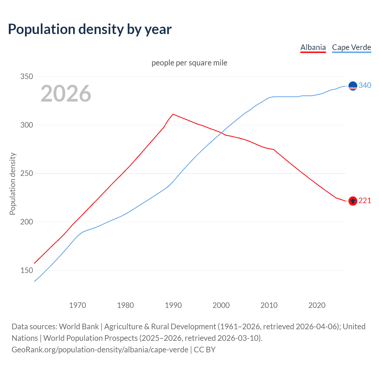 GeoRank.org/population-density/albania/cape-verde | CC BY