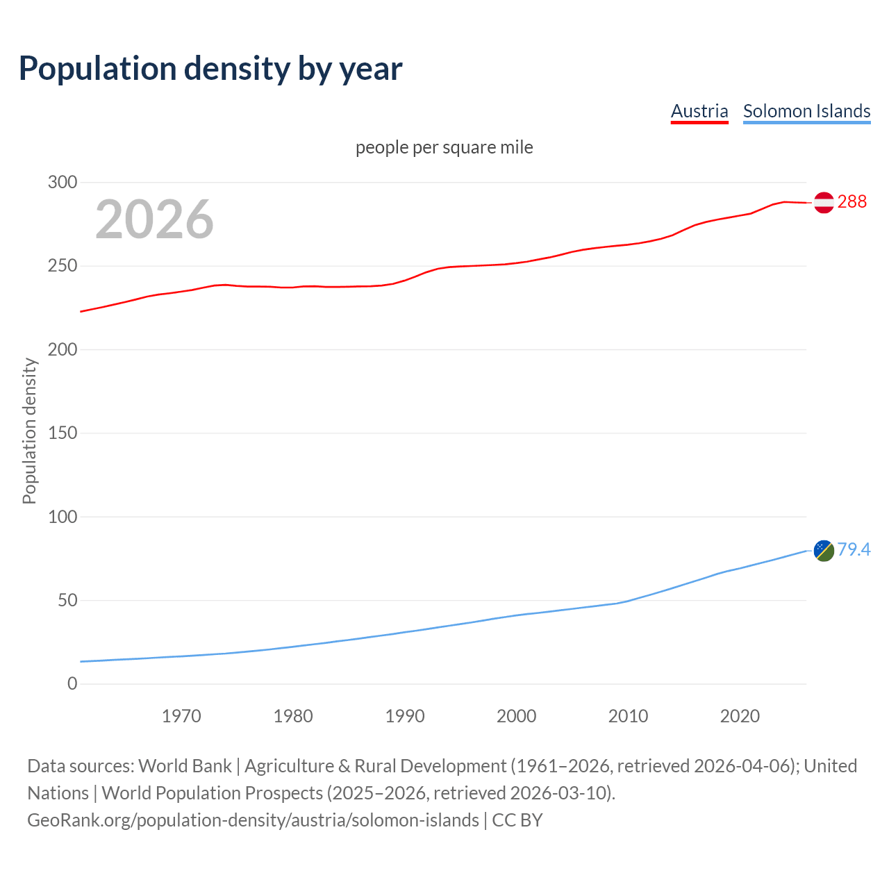 GeoRank.org/population-density/austria/solomon-islands | CC BY