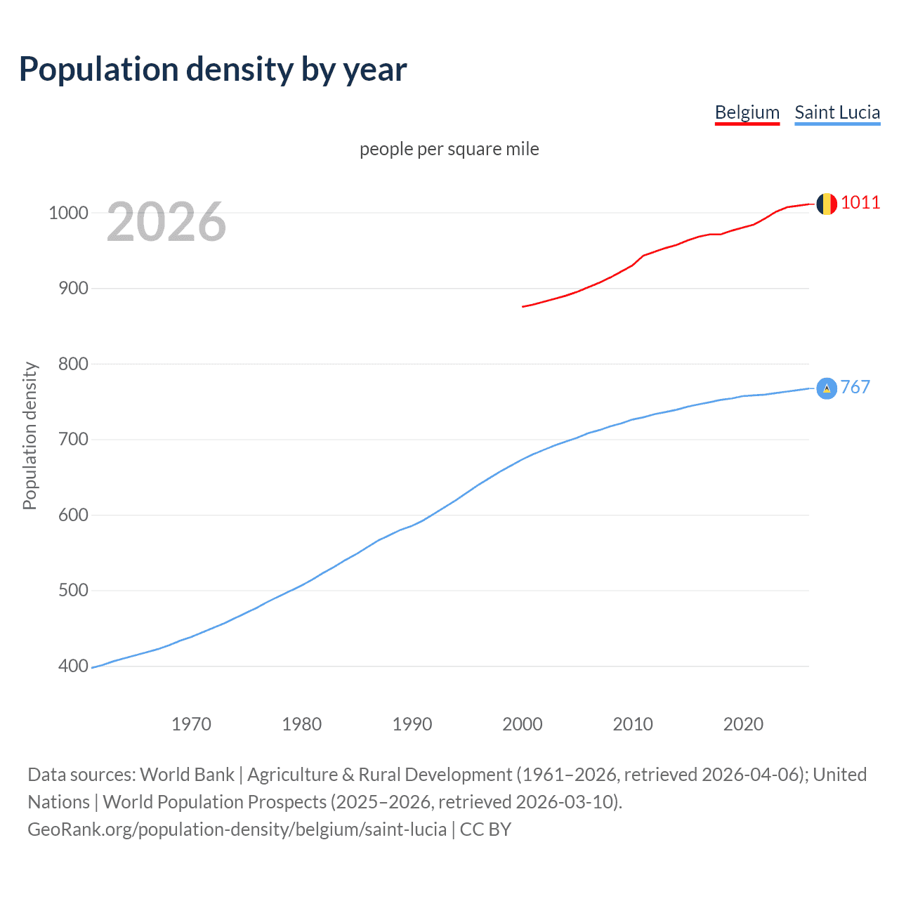 GeoRank.org/population-density/belgium/saint-lucia | CC BY