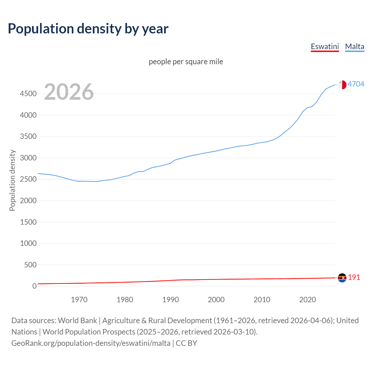 GeoRank.org/population-density/eswatini/malta | CC BY