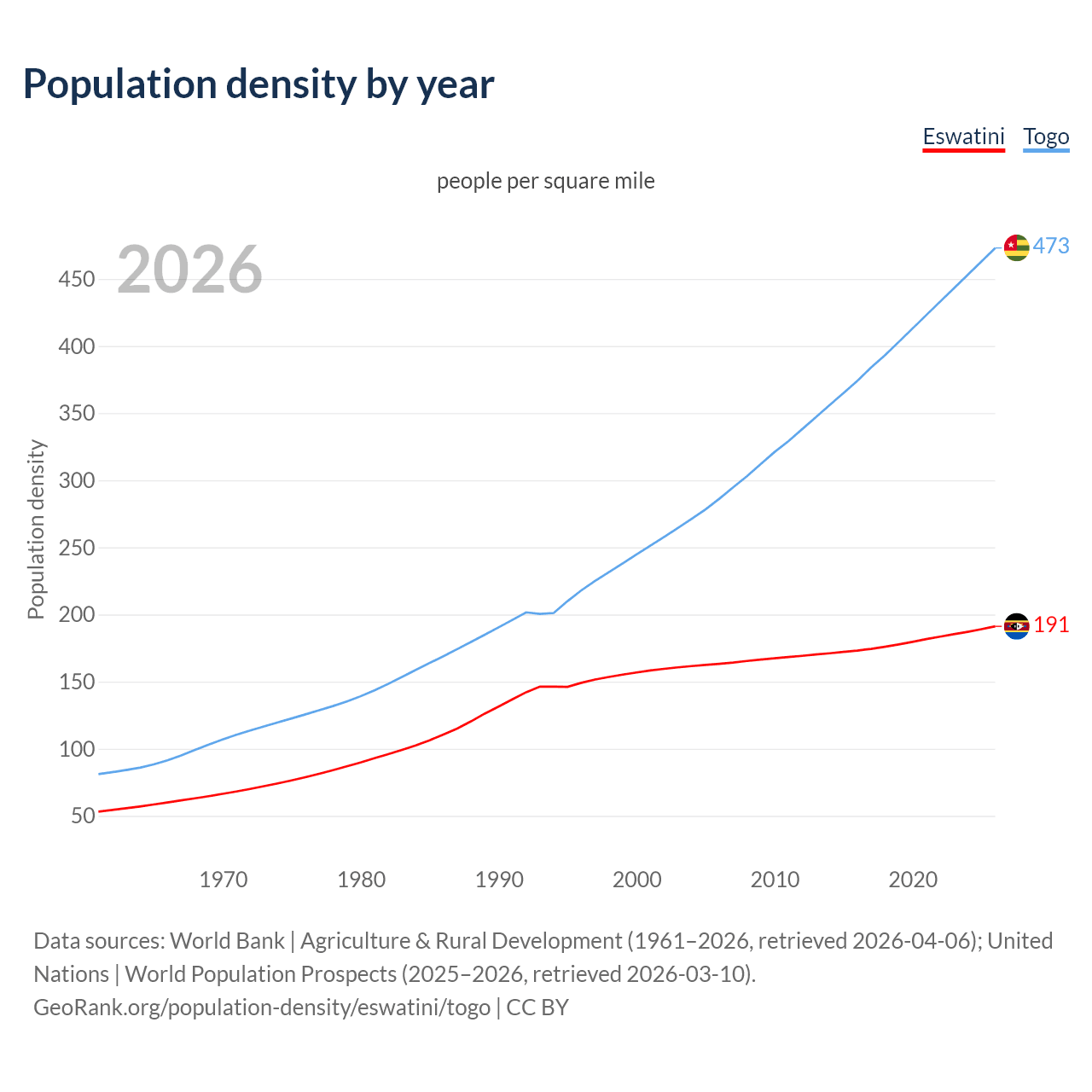 GeoRank.org/population-density/eswatini/togo | CC BY