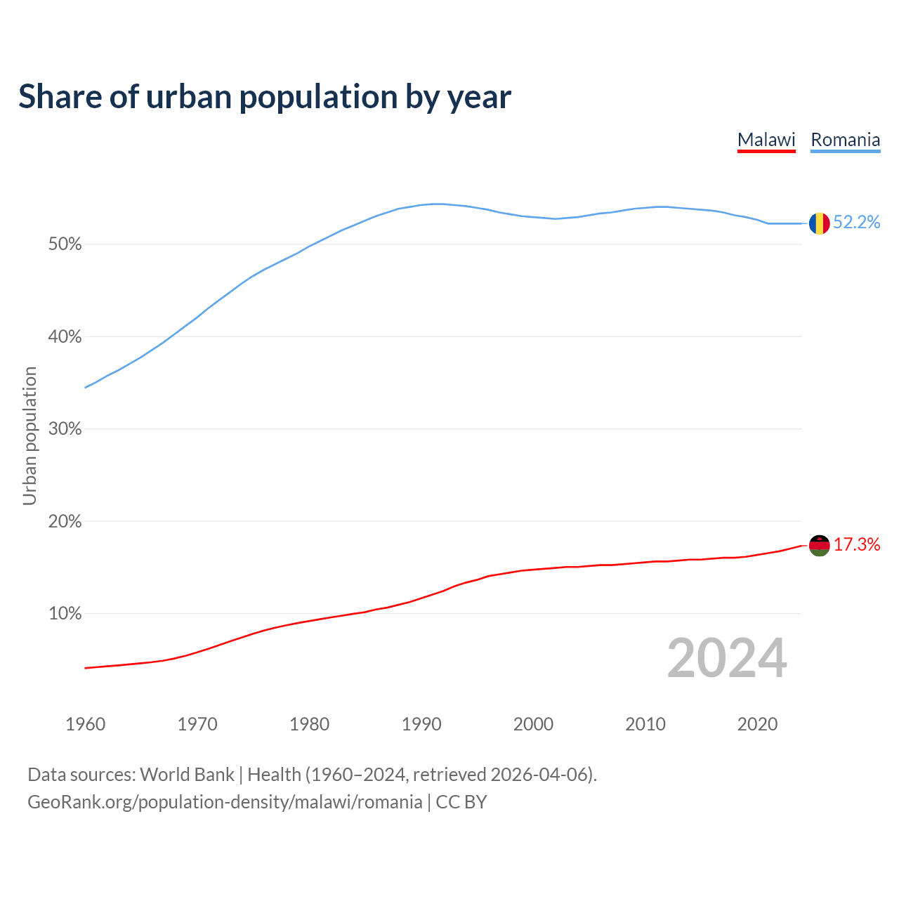 GeoRank.org/population-density/malawi/romania | CC BY
