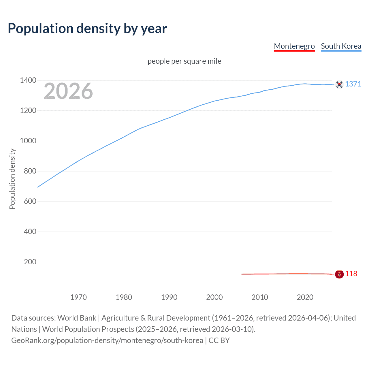 GeoRank.org/population-density/montenegro/south-korea | CC BY
