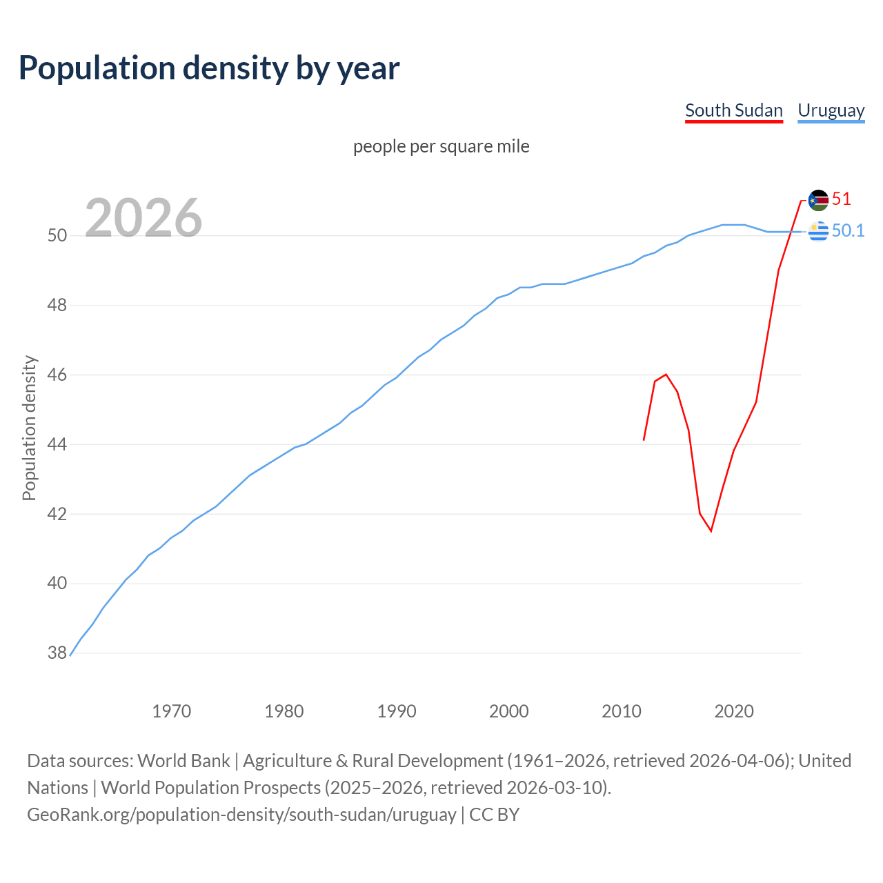 GeoRank.org/population-density/south-sudan/uruguay | CC BY