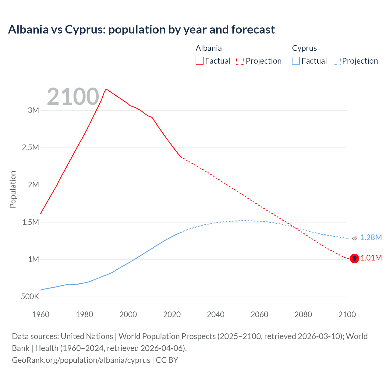 Albania vs Cyprus: population by year and forecast