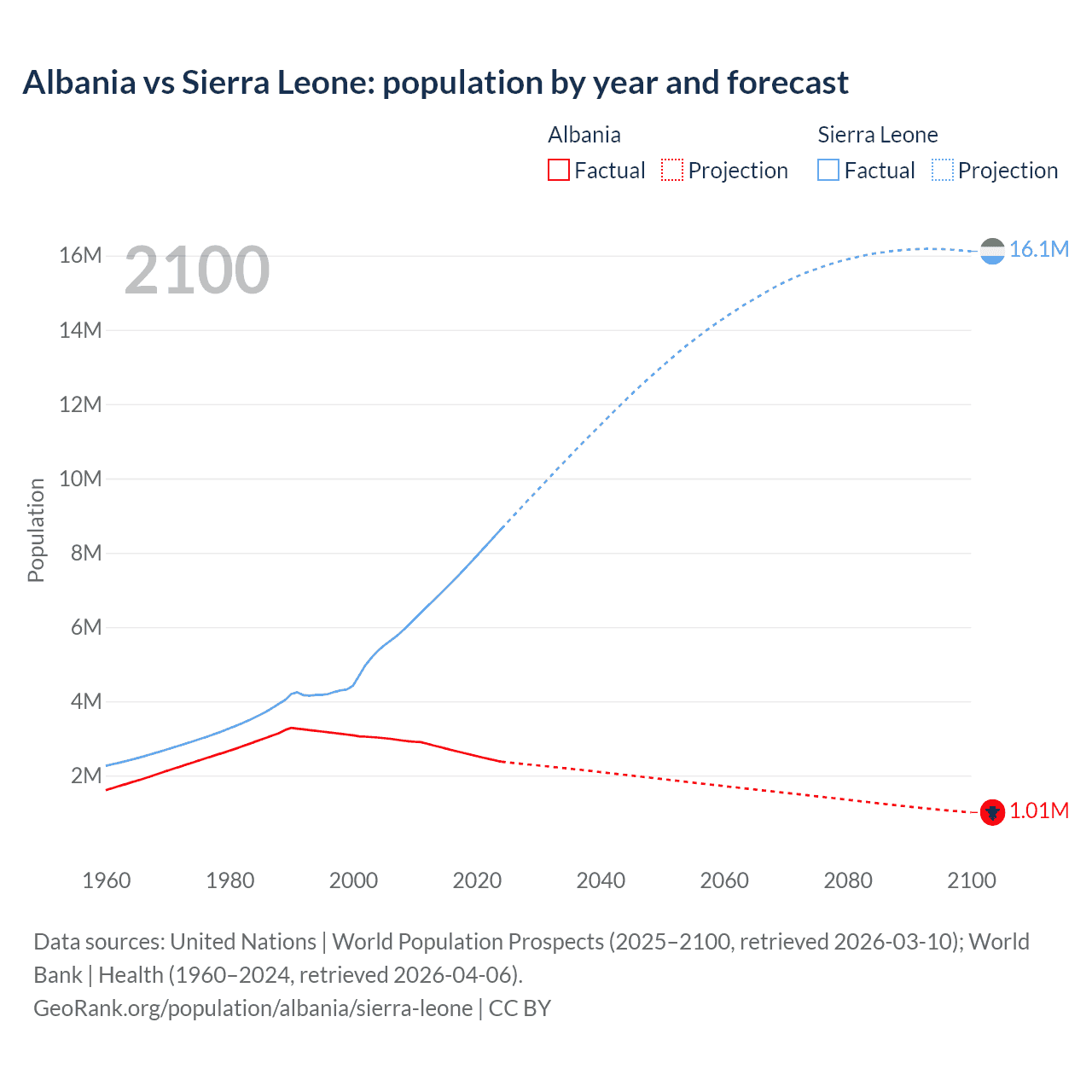 Population differences between Albania and Sierra Leone