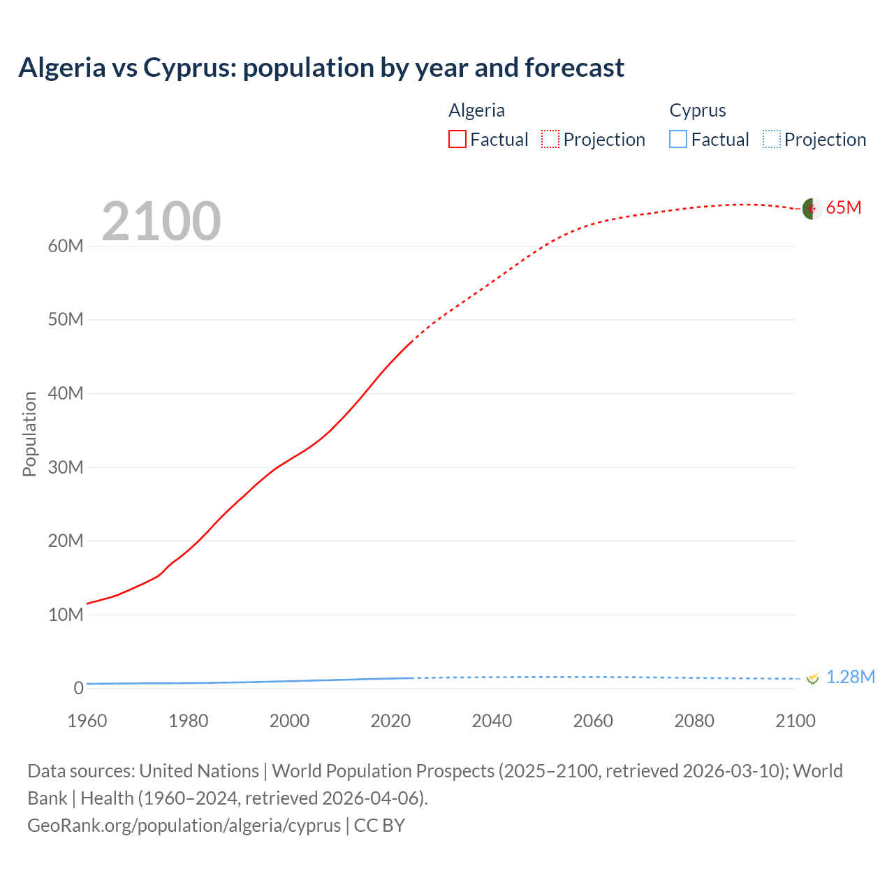 Algeria vs Cyprus: population by year and forecast