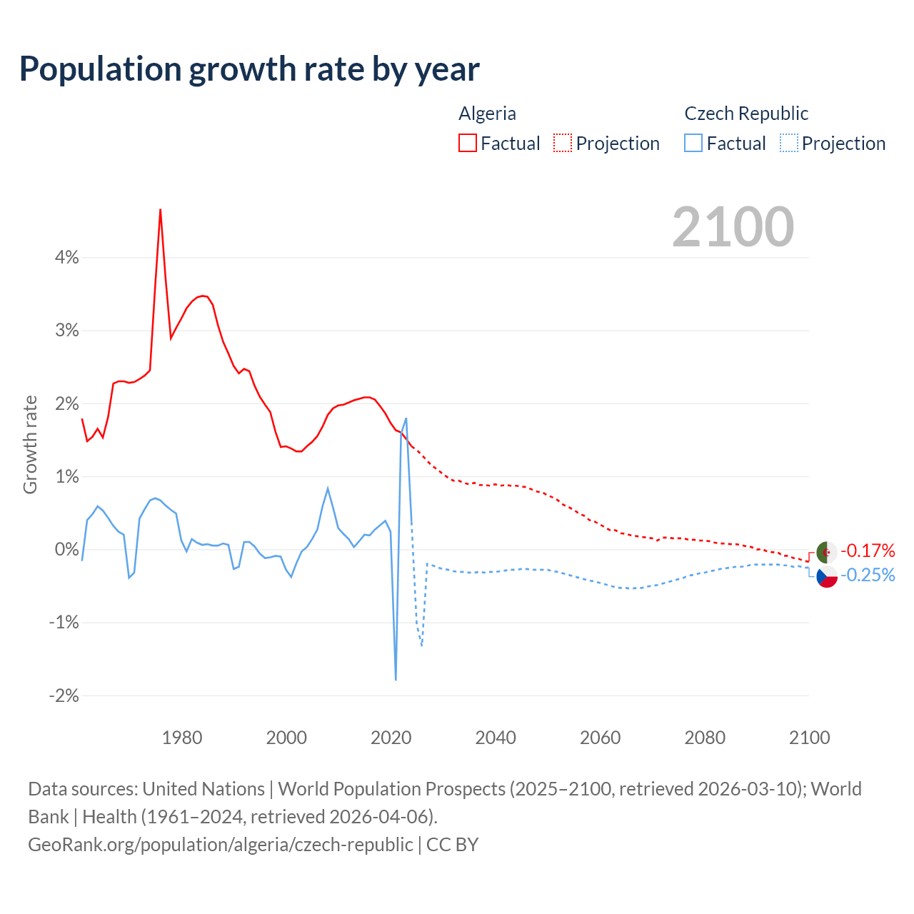 - For the last 10 years, Algeria has had an average growth rate of +1.81% per year vs +0.34% in the Czech Republic.