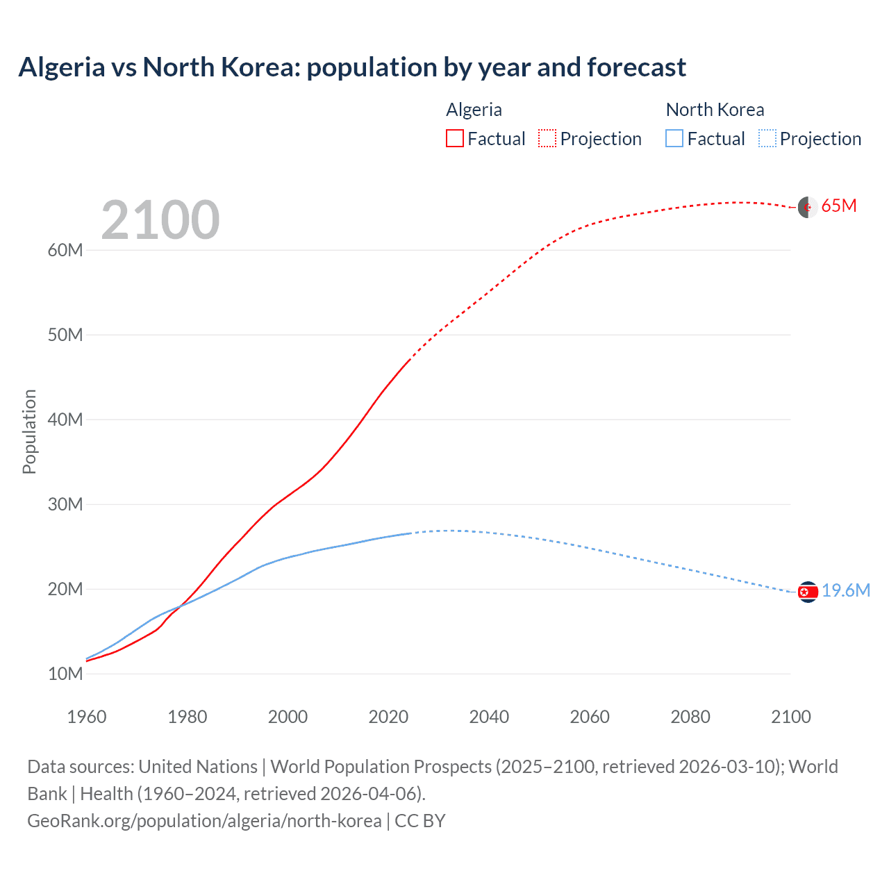 Algeria vs North Korea: population by year and forecast