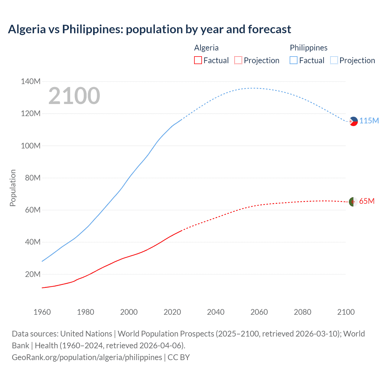 Algeria vs Philippines: population by year and forecast